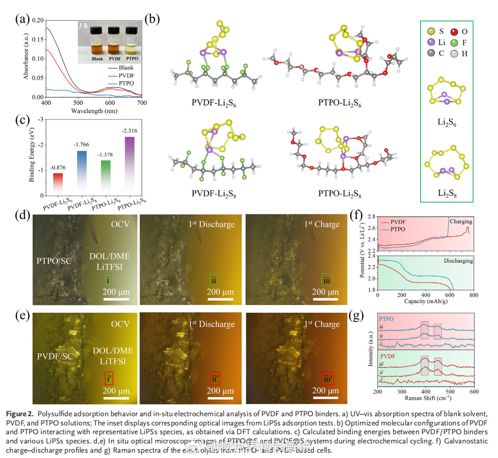 DFT计算进一步揭示,环氧氧原子与多硫化锂的Li⁺形成强相互作用,而醚键则提供电子密度补偿与界面柔性支撑。
